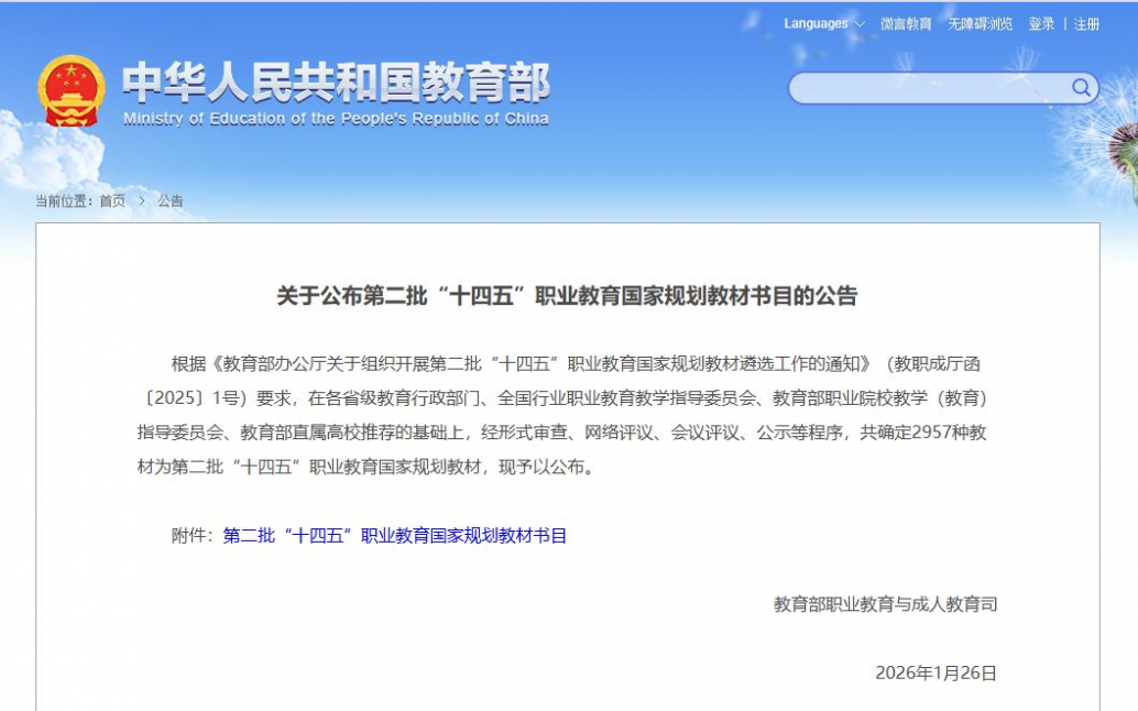 近日,教育部职业教育与成人教育司发布《关于公布第二批“十四五”职业教育国家规划教材书目的公告》,同济大学出版社共有8种(15本)图书入选第二批“十四五”职业教育国家规划教材。此次入选教材,涵盖公共基础、装备制造、交通运输、财经商贸、新闻传播等多个专业大类,紧密对接产业升级和技术变革趋势,具有鲜明的职教特色,为落实立德树人根本任务、培养适应产业需求的高素质技术技能人才提供重要支撑。